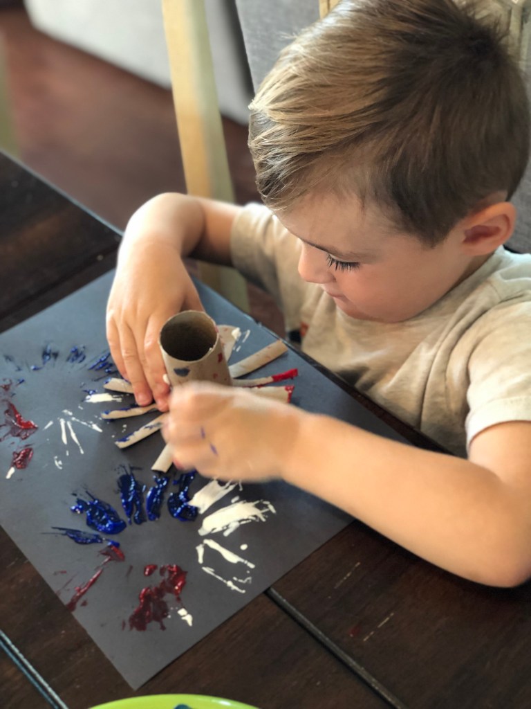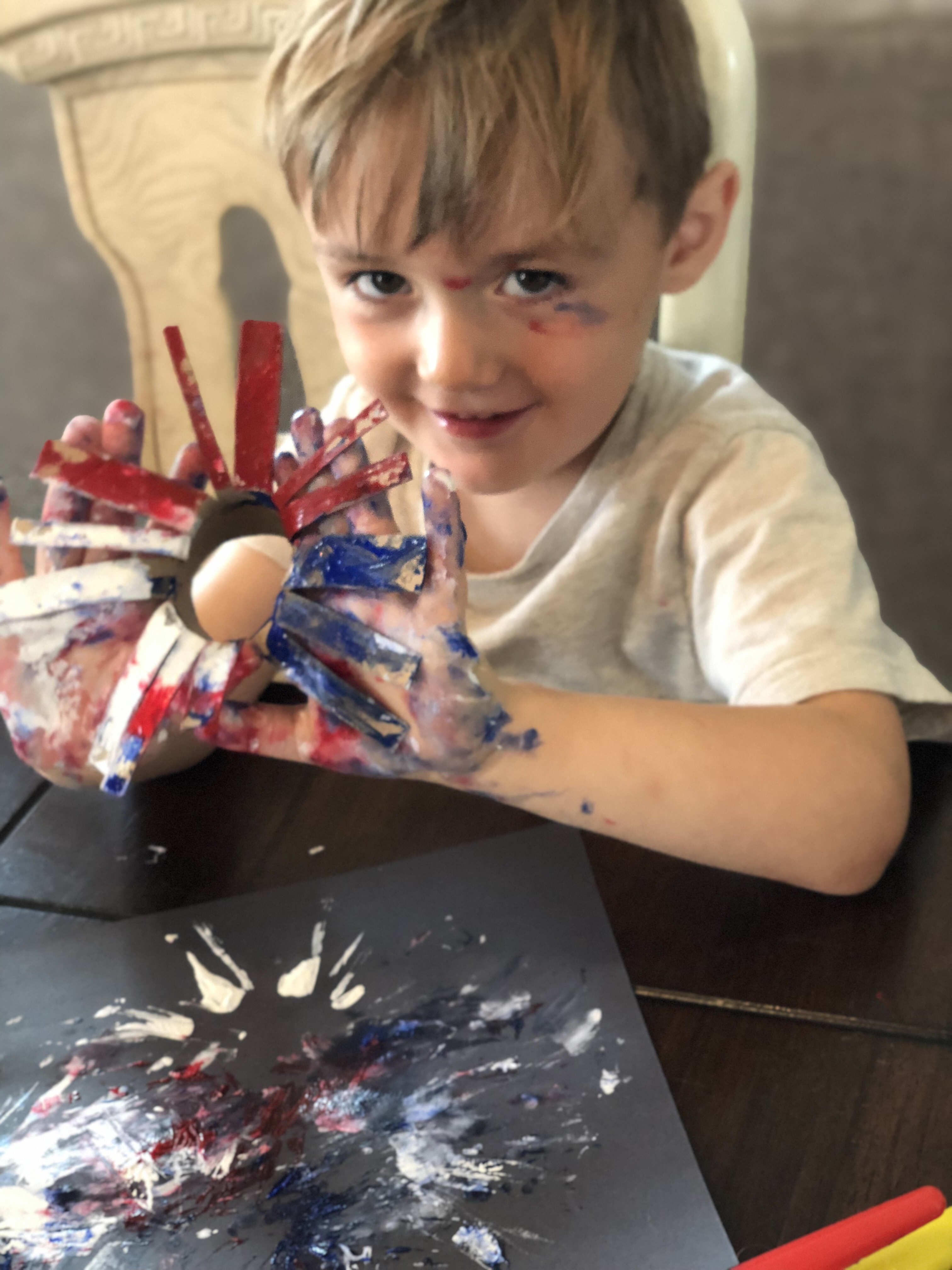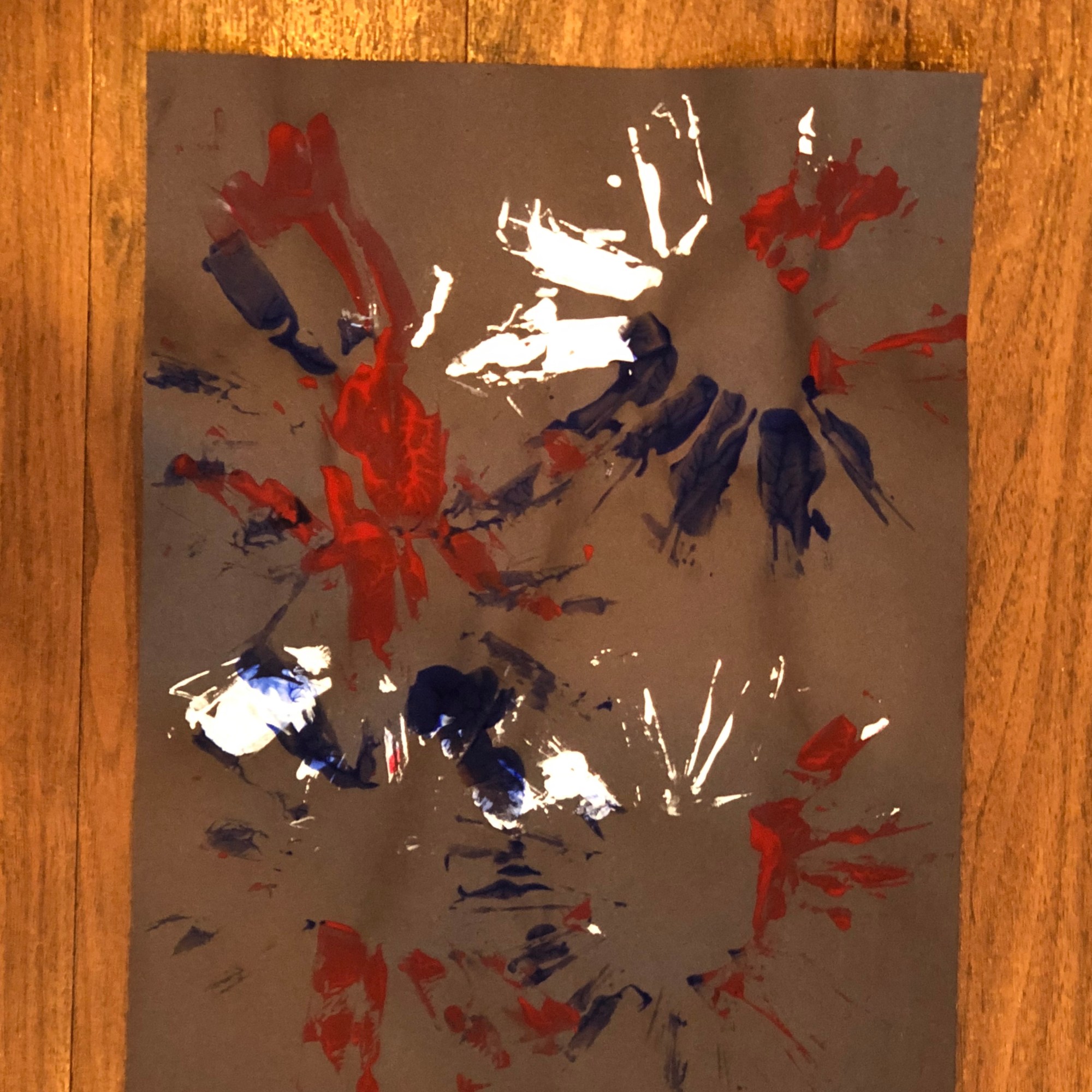 Let them paint and stamp until their hearts are content. We made a ton of fireworks and they are already asking to do it again. Here are a few of their masterpieces!