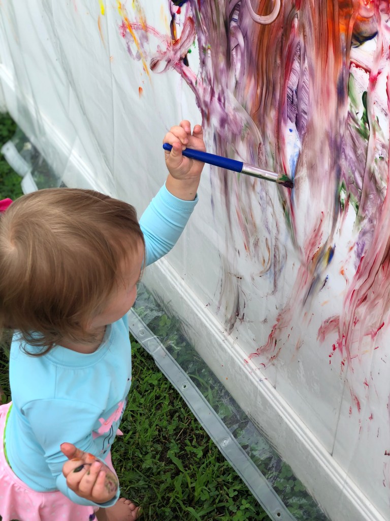 With the help of some nice weather and a shower curtain, our morning was spent outside painting.