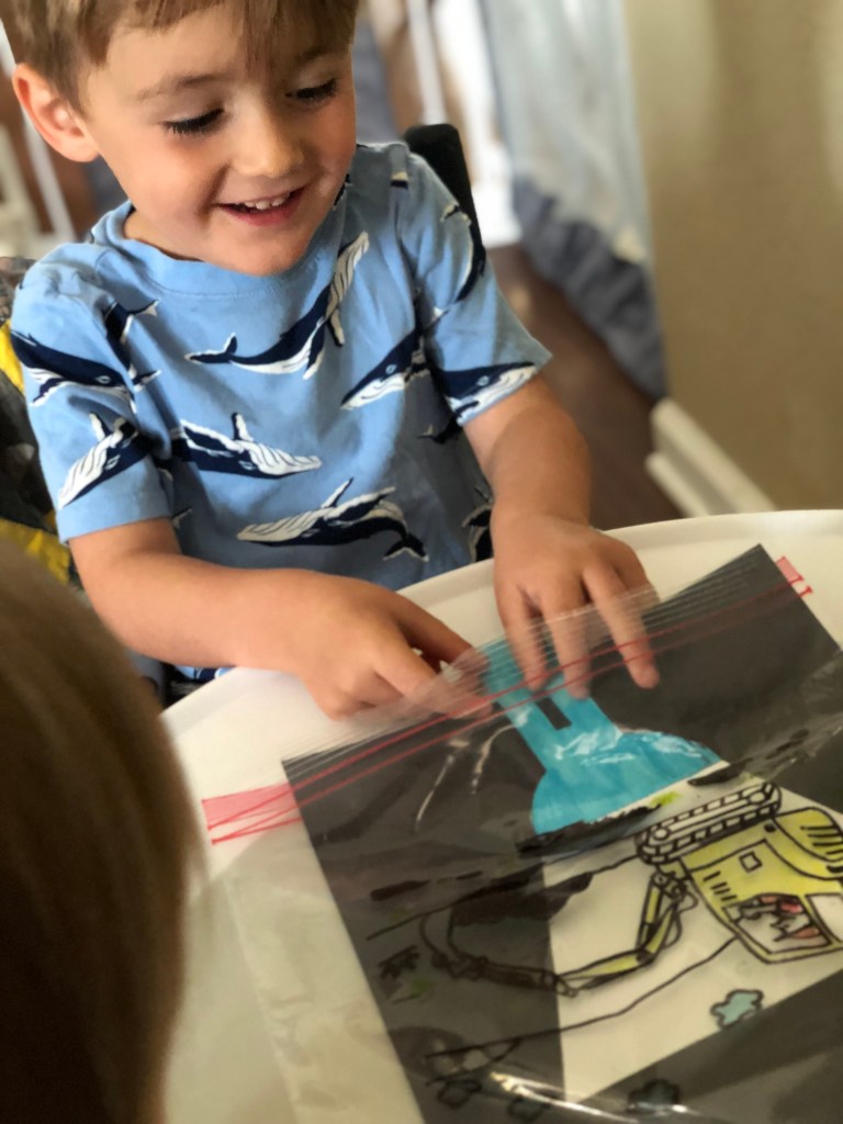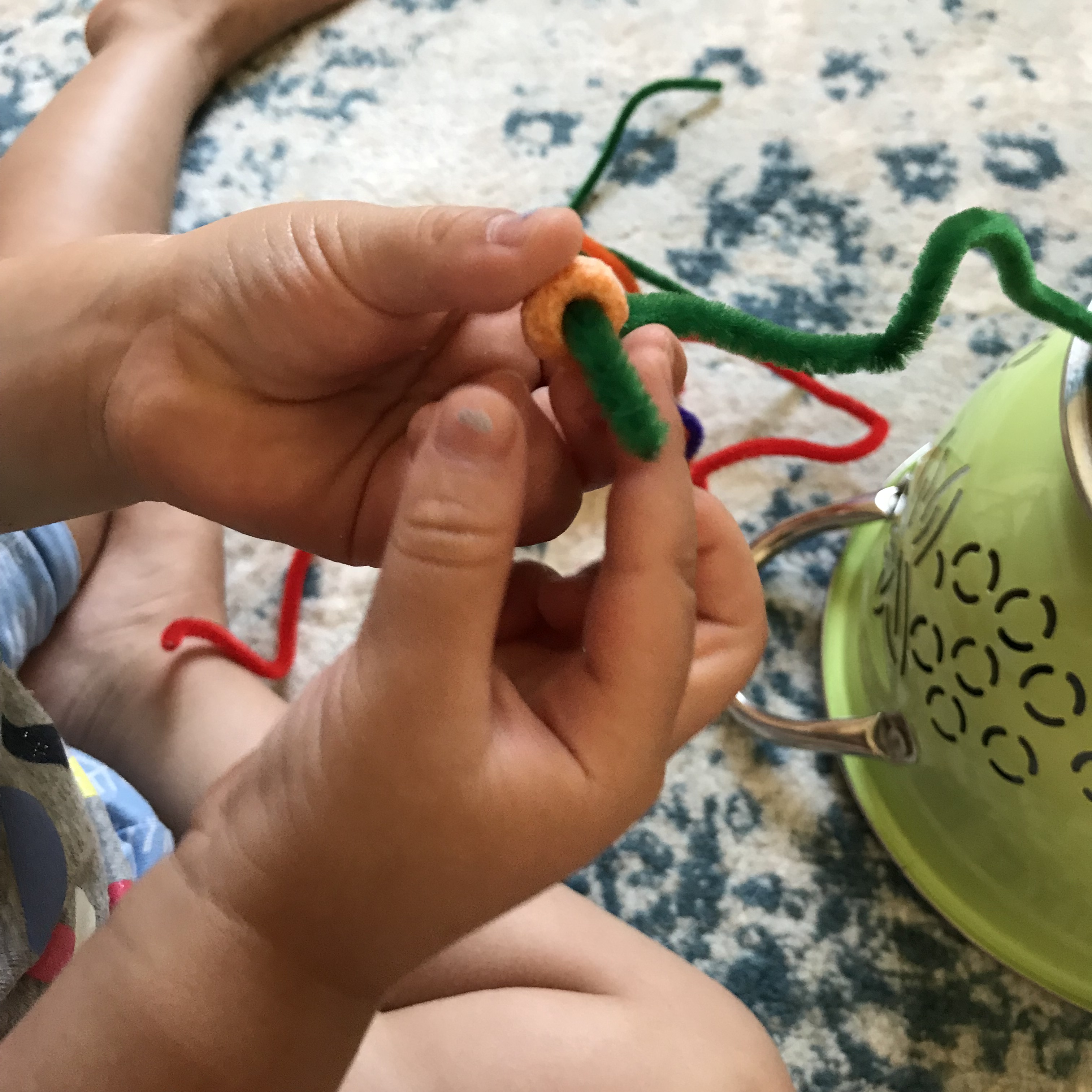 Each of them had a blast playing with the pom poms and this will definitely be a sensory activity we come back to! It took my oldest 10 minutes to sort his pom poms. Ten minutes of concentration, hard work, and silence. I sat there is awe watching him maneuver the tweezers and pom poms. He had so much fun and worked so hard. He was so proud of himself and I was proud of him too!