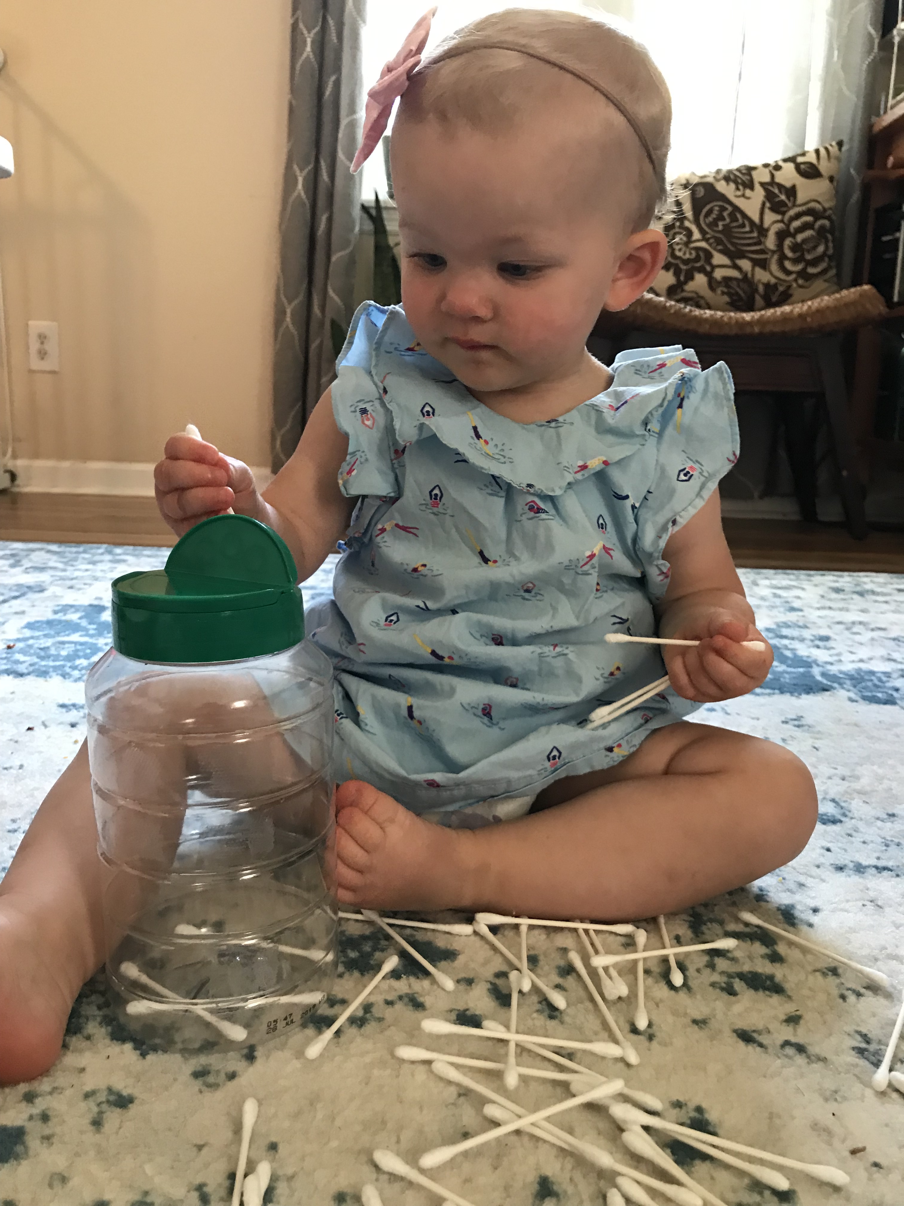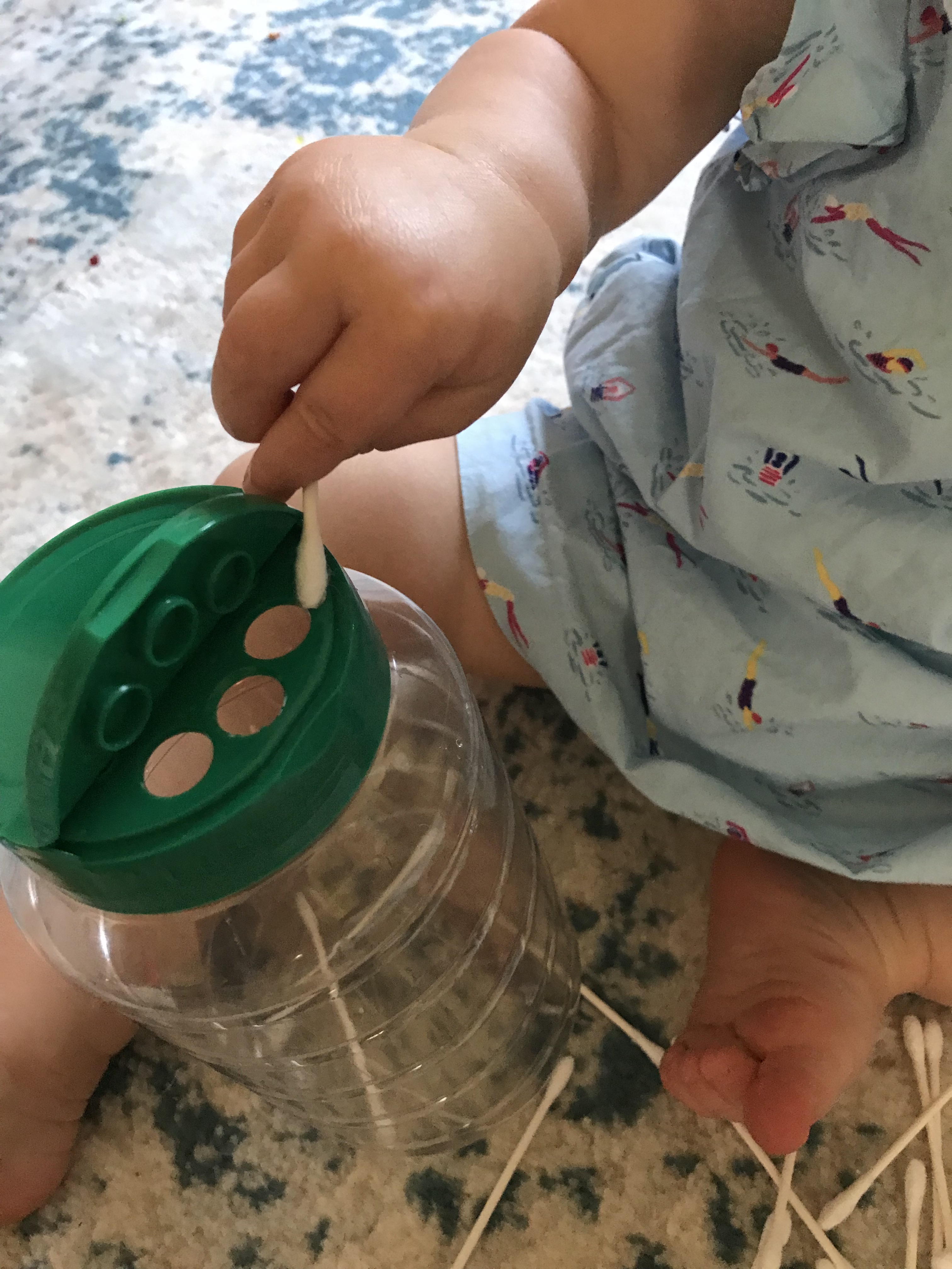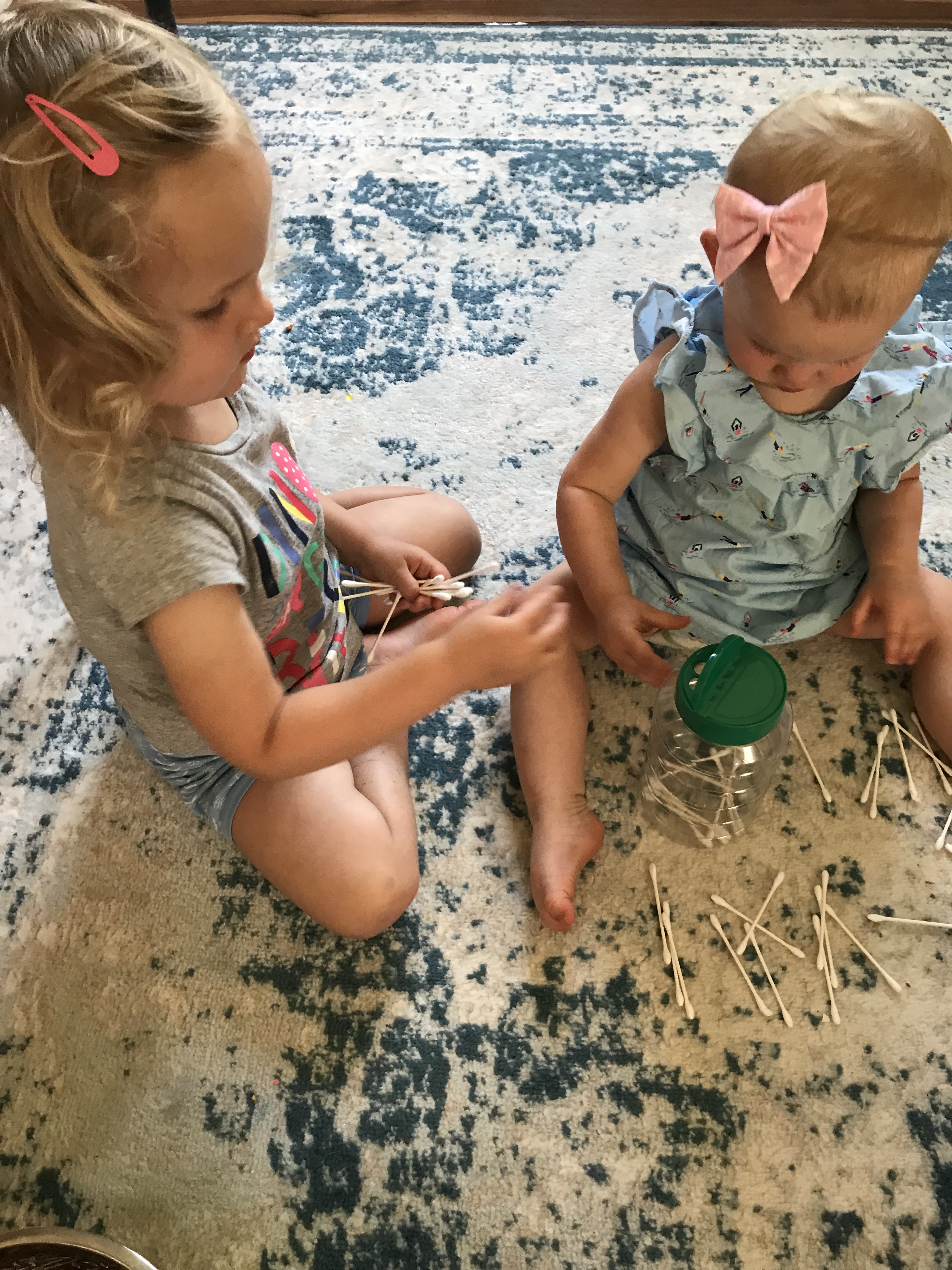 These dollar pom pom balls from Target were a hit with both my one year old and three year old. They are so simple to use, mess free, and oh so versatile. This is also an amazing fine motor skill activity for both kiddos.