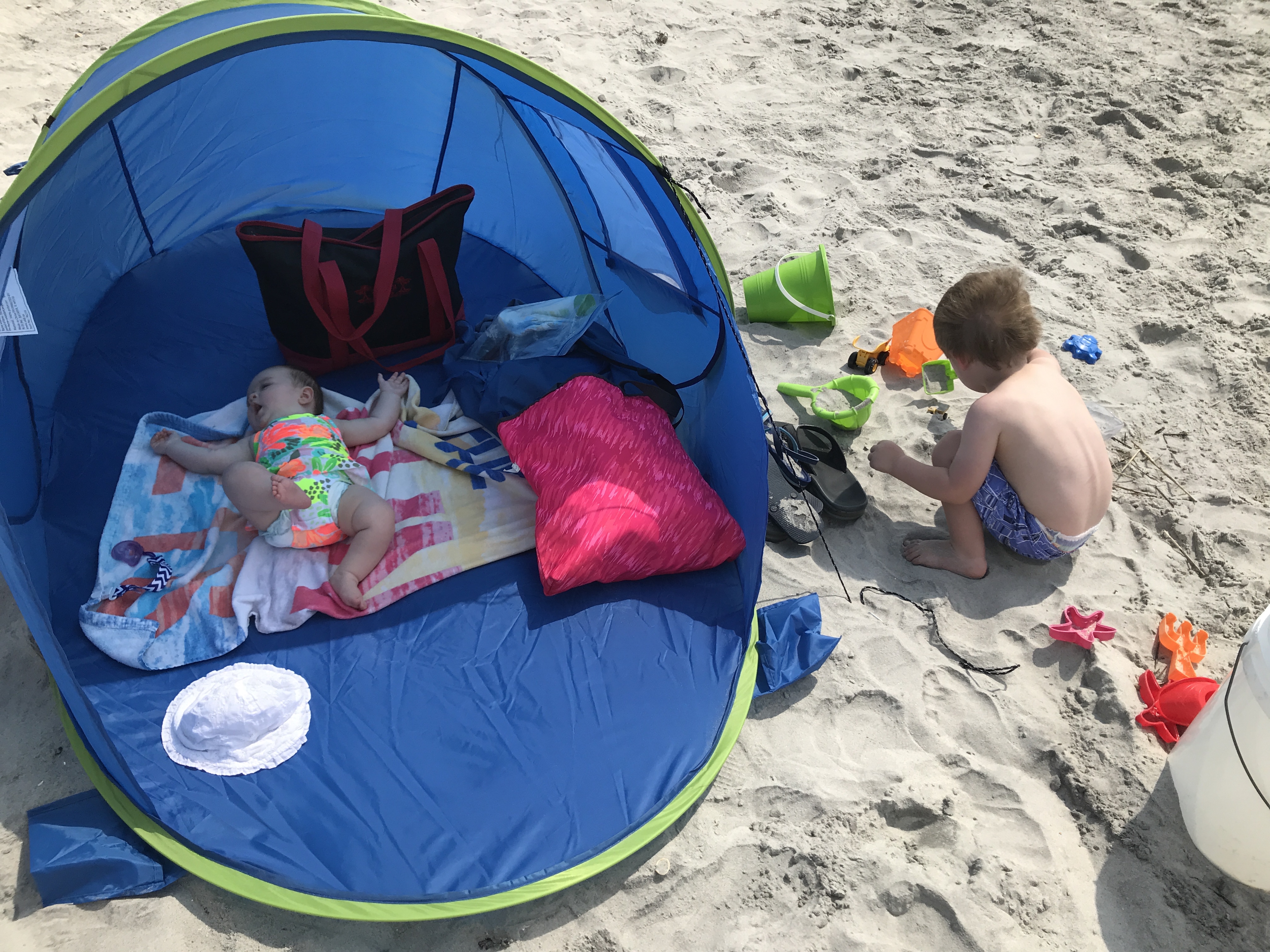 Our canopy has been the best beach accessory we have ever purchased. It is big enough for everyone to fit under and is a great retreat from the heat. Our lunches, naps, and breaks from the sun are all done under our canopy. All beachgoers know that umbrellas and tents can take some trial and error. Some work well, some don’t. You don’t want to always be battling the beach breeze. Canopies are the perfect pop up solution when you need a little shade for little people.