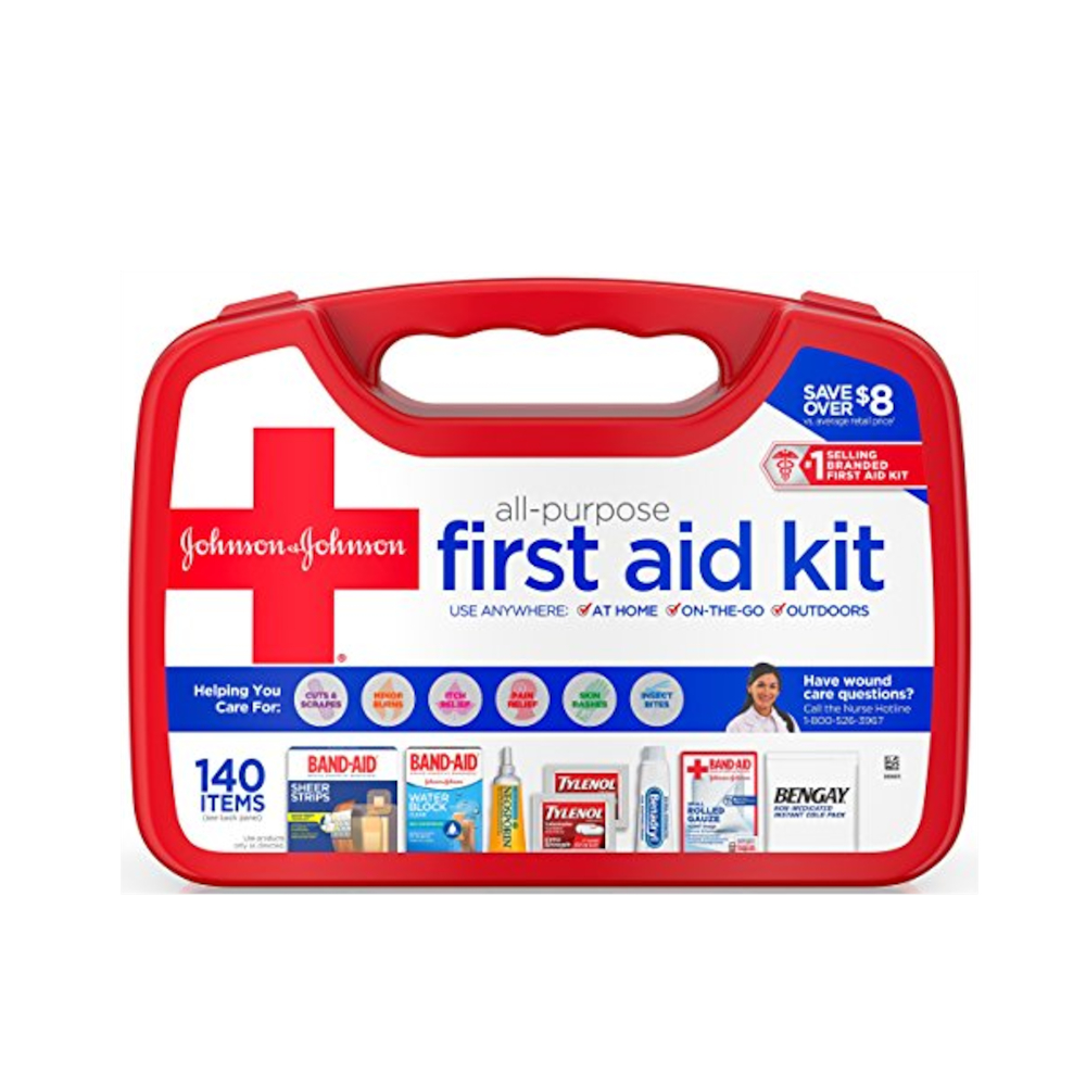Aside from the medicines mentioned above, keeping basic first aid supplies will help set your mind at ease as well. I actually purchased a pre-made first aid kit for a camping trip from Walmart because it came in a handy, easy-to-identify red box. I took some of the surplus supplies out to make room to add a few extra things. It stays in my van, so I have it at home or away, and it includes: