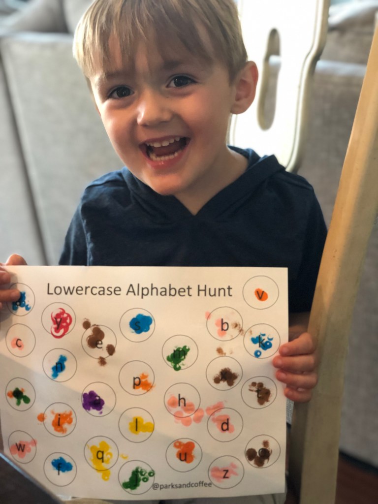 Repetition is a great tool to use when teaching your child their alphabet, but that doesn’t mean you have to do the same activity over and over again. Creating new activities for Gray keeps him interested and his wheels turning.